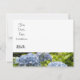 Eine hübsche Hauseinladung mit eleganten, tiefblauen Hydrangeas mit hellgrünem Blattwerk.Passen Sie Ihre Informationen nach Ihren Wünschen an.
