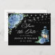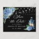Blue Hydrangea Lantern Black Wedding Save the Date Postkarte