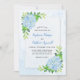 Diese Einladungen sind in einem modernen, blauen Hydrangea-Design mit grünen Blätter und Blattwerk auf einem Aquarell-Leinwand Hintergrund. Personalisieren Sie sie mit Ihrem eigenen Text.