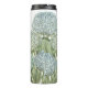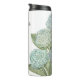 Blauer Blumenstrauß mit leuchtend grünen Blätter, bemalt und detailliert. Garten, botanisch, Naturdruck.