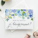 Werden Sie meine Leibeigene sein? Frag deiner Junior-Brautjungfrau, an deinem Hochzeitstag teilzunehmen, mit dieser bezaubernden Vorschlagskarte, die eine blühende Aquarellgarage mit blauen Hydrangeas, Elfenbein-Rose und Grünpflanzen bietet. Die sanften, eleganten Farbtöne eignen sich ideal für Hochzeiten im Frühjahr und Sommer oder für inspirierte Themen. Personalisieren Sie die Karte mit ihrem Namen und einer kurzen Nachricht, um den Augenblick aussagekräftig zu machen. Egal, ob sie eine jüngere Schwester, Cousin oder eine nahe Familienfreundin ist, diese Karte ist eine süße und nachdenkliche Art, sie in Ihr Brautparty einzuladen.