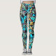 Diese Leggings zeichnen sich durch ein grafisches Muster - städtische Kunststil - aus, das auf einem Foto Hydrangeas basiert. Die Farbtöne Türkis, Schwarz, Gelb, Rosa und andere Farbtöne sind hier zu finden. Jedes Bein hat nicht das genaue Muster, sondern die gleichen Farbtöne und ähnliche Gestaltungselemente.