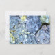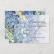 Passen Sie die elegante Blue Hydrangea Wedding RSVP Response Card mit Ihrem Eheantwort an. Diese hübsche Gartenhochzeitkarte zeigt ein nahes Blumenfoto einer blauen Hydrangea-Blume.