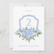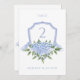 Dieses schöne Design zeichnet sich durch blauen Hydrangea-Blüten und ein Aquarell-Wappen für Hochzeiten aus. Fügen Sie Ihre Informationen mithilfe des Vorlagenformulars hinzu. Deaktivieren Sie die Option für Umschläge.
