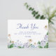 Weich staubige blaue und lila Hydrangeas mischen sich mit weich blütigen, weißen wilden Rose. Der Name des Geburtstagsfeiers ist in einem gut lesbaren Script-Schriftart verfasst. Zwei Textzeilen lasse Ihnen, Ihre Dankbarkeit zu personalisieren. Der gesamte Text ist bearbeitbar, sodass Sie Ihren Empfang anpassen können.