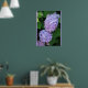 Foto von blauen Hydrangea-Blüten. Ein Poster für Liebhaber von Blume im Allgemeinen und Hydrangen im Besonderen