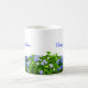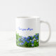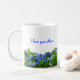 Ich Liebe, Sie Mama blauen Hydrangeas Tasse. Hydrangea-Büsche / Sträucher, die im Garten wachsen, ist das Bild unten mit blauem Text auf beiden Seiten.
