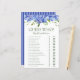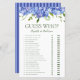 Dieses hübsche, blaue Hydrangeas Guess Who - Brautparty-Spielblatt ist elegant und charmant - perfekt für jede Gartenhochzeit, botanisch, rustikal, romantisch, floral, formell oder alt. Seine exquisite Kombination aus anmutigen, mehrfarbigen, blauen Hydrangeas und Weisheit Grün ist geflogen, zart und schön. Dieses lustige und leichte Spiel bringt jede Menge Lachen in jedes Brautparty! Sie werden erstaunt sein, wie viele Antworten die Leute wissen werden. In Sekunden können Sie sehen, wie Ihr Spielblatt aussehen wird. Wählen Sie einfach diese Vorlage personalisieren und geben Sie die Namen der Braut und des Bräutigams ein.