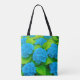 Tote bag with blue hydrangeas, a floral design bag to add the beauty of nature’s bloom to your belongings and style.