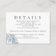 Eine Einladungskarte, um weitere Details für Ihre Gäste zu geben, mit einem Single Aquarellblau Hydrangea Stiel. Andere Artikel in diesem Design sind verfügbar.