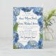 Schöne blaue Hydrangeas und das Aussehen von verwittertem Holz rustikalen, boho Garten Hochzeit Einladung. Personalisieren Sie Text wie gewünscht.