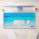 Ein ikonisches Meeresstrand-Bild ist die Grundlage für dieses monogramm Schreibtischmatte-Design. Blues und Aqua sind die Hauptfarben des Designs. Ändern Sie die Initialen für Ihre eigenen Initialen oder Namen, und Sie können die Buchstaben ganz löschen, wenn Sie auf dieser persönlichen Schreibtischmatte gewollt haben.
