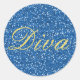 Blue Imitats Glitzer Diva Runder Aufkleber