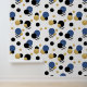 Dieser schöne Wallpaper ist mit Polka-Punkten in blau indigo, gold, schwarz und Streifen ausgestattet. Die perfekte Ergänzung zu Ihrer Wohngestaltung.