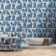 Dieses luxuriöse Tapete mit einem Set Löwen in blauer Tinte.