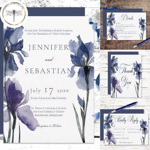 Modern Blue Iris Flowers WeddingDesignt von Kathe Santillo