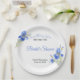 Elegant Blue Iris bridal shower paper plates featuring a soft something blue floral design. Perfect for a Something Blue Before I Do bridal shower celebration. Personalized with the bride’s name and event date, these disposable plates are ideal for desserts, cake, and party tables. A beautiful addition to a coordinated blue iris bridal shower collection including napkins, banners, signs, favors, and table décor.