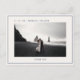 Personalisierte, einfache Marineblau Stilvolles Modernes Cooles Elfenbein-Foto Hochzeit Dankeschön Foto Postkarten mit elegantem und minimalistischem Sans-Serif-Schriftart, individuellem Foto, Pärchennamen, Absenderadresse, Hochzeitsdatum und -ort, Website-Link zur Einladung, vollständig anpassbarer Hintergrund und einer fett coolen schwarzen Grenze (optional). Passen Sie Ihre Dankeschön-Karte an, indem Sie verschiedene Hintergründe für das Bild auf der Vorder- und Rückseite auswählen, oder verließ Sie diese klassische und saubere Weiß-Farbe. Sie können auch eine feste, benutzerdefinierte Hintergrundfarbe wählen. Eine einfache und coole Vorlage vollständig anpassbar perfekt für Ihre Hochzeit Dank, Verlobung Ankündigung, Brautparty, danke Karten und mehr. Erstellen Sie Ihre eigene, raffinierte Karte für jede einzigartige Feier.