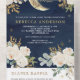 Blue Ivory Gold Floral Boho Moon Babydusche All In One Einladung