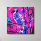 Blue Jay Bird auf Baumzweig Rosa Abstrakte Kunst Leinwanddruck