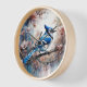 Blue Jay Cherry Blüten Wasserfarbe Uhr
