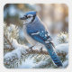 Blue Jay Perched On a Snowy Pine Quadratischer Aufkleber