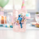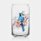 Ein blauer Jay-Vogel, umgeben von pastellfarbenen Frühlingsblumen