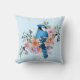 Ein blauer Jay-Vogel umgeben von rosa, lila und pfirsichfarbenen Frühlingsblumen Set vor einem hellblauen Hintergrund.