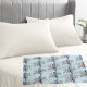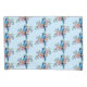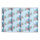 Ein blauer Jay-Vogel umgeben von rosa, lila und pfirsichfarbenen Frühlingsblumen Set vor einem hellblauen Hintergrund.