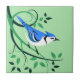 Stilisierte Vogelkunst eines blauen Jay auf Keramik Kacheln. Die Hintergrundfarbe kann online geändert werden