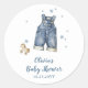 Blue jean baby shower round sticker—perfect for sealing favor bags, decorating envelopes or adding playful denim charm to your rustic celebration. Ideal for backyard parties, casual brunches & little cowboy themes. Personalize easily to match your blue jean baby shower.