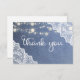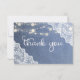 Schicken Sie Ihren Gästen Dank mit diesen blauen Jean, Spitzen, Lichter Unkraut oder jedem Anlass danke Karten. Bietet eine Option für eine vorgefertigte Nachricht. auf Imitaten blau jean. ideal für Hochzeiten auf Land.