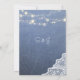Blaues Glas, Spitzen, Lichterketten Hochzeitsempfang. Feiern Sie Ihre Hochzeit in Ihrem Empfang mit Stil und Kultur mit diesem Imitat Jean-Menü. Passen Sie Ihre Einstellungen an.