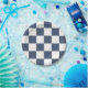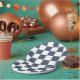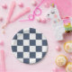 Papierplatte mit blauem Jeans, blau-weiß kariertes Muster. Ideal für jede Ansammlung.