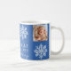 Blue Jolly Merry Snowflake Foto Weihnachtsfeiertag Tasse. Hübsche weiße Schneeflocke auf blauem Hintergrund. Fröhlich, Glücklich, Jolly Text in einer festlichen Typografie. Das Design hat ein individuelles Foto - fügen Sie Ihr Lieblings-Foto in die Vorlage und machen Sie Ihre persönliche einzigartige Weihnachtszeit Tasse.