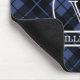 Mousepad bedruckt mit einem blauen karierten Muster und einem Fischhaken und einem ausspringenden Fischmonogramm mit Ihrem Namen und der Erstschrift in Weiß.
