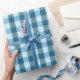 Niedliche helle und dunkelblaue karierte Geschenkpackung. So niedlich für jeden Anlaß.