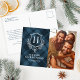 Blue Kariert Monogram Foto Christmas Feiertagspostkarte