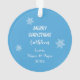 Ein niedliches graues Kätzchen sitzt in einem himmelblauen Holiday-Kranz vor diesem Ornament. Das Kätzchen trägt einen blauen Strumpf mit weißen Schneeflocken und Winterschal. Sie hat einen rosa und weiß gestreiften Bonbons. Der Name Ihres Kindes ist oben rechts in Rosa. Die Rückseite des Ornaments ist solide passend blau, mit verstreuten weißen Schneeflocken und Ihrem eigenen Text in fünf Feldern. Leicht anzupassen, und jedes kleine Mädchen würde dieses Sake-Ornament von einem Elternteil oder Großeltern Liebe.