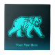 Eine einfache, helle, neonähnliche Darstellung eines Kodiak Bären. Inspiriert durch die Nordlichter. Passen Sie Ihren eigenen Text an. Der Kodiak-Bär (ursus arctos middendorffi), eine Unterart des Braunen oder Grizzly, ist der größte Bär der Welt. Ein vollgewachsenes Männchen kann über 1,50 m hoch sein, wenn es aufrecht auf seinen Hinterbeinen steht und über 1500 Pfund wiegt - ein wahrer Anblick. Ein Bär im Bismarck, der Zoo von Nord-Dakota, hat schätzungsweise bis zu 2400 Pfund gewogen. Die Bären leben auf den Inseln des Kodiak-Archipels von Alaska. Heute gibt es ca. 3500 Kodiak-Bären und ihre Anzahl steigt aufgrund der im Allgemeinen ausgezeichneten Lebensbedingungen, inklusive ausreichend Faust zum Essen. Sie werden in Alutiiq "takuka-aq" genannt, der Sprache der Einwohner dieser Gegend. Man glaubt, dass die Bären dort seit gegen Ende der letzten Eiszeit vor über 12.000 Jahren abgeschieden waren. Obwohl sie die größten terrestrischen Fleischfresser sind, umfasst ihre Ernährung große Mengen von Gras, anderen Pflanze und Beeren. Heute gibt es etwa 3500 Kodiakbären, deren Anzahl aufgrund des allgemein ausgezeichneten Zustands ihres Lebensraums, einschließlich ausreichender Fische zum Essen, zunimmt. Aufgrund des Überflusses an Nahrungsmitteln haben Kodiak-Bären kleinere Zuhause-Reichweiten als alle anderen Braunbären und brauchen keine Gebiete zu verteidigen. Die Alutiiq jagen Bären für Nahrung, Kleidung und Werkzeuge. Pfeile, Speere und viel Mut waren notwendig für die Jagd. Bärenköpfe wurden in der Regel auf dem Feld als Zeichen des Respekts vor dem Geist der Bären links.