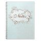 Dieses Notizbuch-Journal hat einen hellblauen Hintergrund mit schwachen Schneeflocken. Im Mittelpunkt steht das kunstvolle Mitteldesign mit seinen Wirbel und Kurven in weiß und braun und das Wort 'Notizen'. Dies ist ein sehr hübsches Buch, das für viele Gelegenheiten benutzt werden könnte.