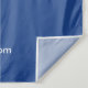 Blau-weiße Kulisse für Ihr Unternehmen mit Ihrem großen Logo und Ihrem eigenen Text. Füge deinen Social Media Handle unter den weißen Social Media Icons hinzu.