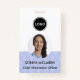 This is a Modern Stylish and Minimalist Badge on blue lavender, perfect for business owners, company staff or business employees the template includes business logo, employee photo, name and position, additional space for extra information on the back and custom QR code!