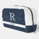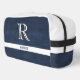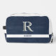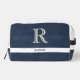 Blue Leather Textur White Monogram Name Dopp Kit Waschbeutel