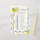 Machen Sie Ihr Haupt-Squeeze-Brautparty-Thema extra Spaß mit diesem Personalisierten Blue Lemon Brautparty Er sagte sie sagte Spiel! Dieses Spiel mit einem zauberhaften Zitronendesign ist perfekt für eine große Zitronenfeier im Brautparty. Es ist eine tolle Ergänzung zu Ihrem Zitronenmotiv und behalte den Gästen Unterhaltung und eine stilvolle Touch. Ideal für Gäste, die Lemon-Brautparty-Ideen, Zitronen-Brautparty-Ideen oder Brautparty-Ideen im Sommer suchen!
