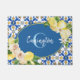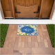 Neuer Name der Zuhause-Familie und Monogram Doormat. Blau-gelbe und mediterrane Kacheln. Klein.