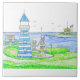 Handgezeichnete blaue Leuchttürme Keramik Tile