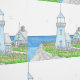 Handgezeichnetes blaues Leuchtturm-Tapete