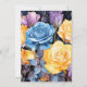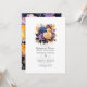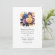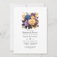 Blauer, lila, goldener und schwarzer Blumen Hochzeitsessen Probe Einladung. Ideal für jede Art von Thema oder Gartenhochzeit.