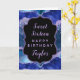 Diese elegante und glamouröse Geburtstagskarte kann mit einem Namen oder Titel wie Tochter, Enkelin, Nichte, Freund etc. personalisiert werden. Das Design ist in dunkelblau-agatfarbenem Marmorboden gehalten, mit Imitaten mit blauen Glitzer-Akzenten. Der Text kombiniert handgeschriebene Skripte mit modernen serifenlosen Schriftart für ein elegantes und raffiniertes Aussehen. Die Sequinen und die bedrückte Textur schaffen die perfekte Mischung aus Chic und Grunge.